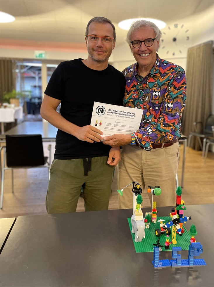 Jestem moderatorem warsztatów metodą LEGO® SERIOUS PLAY®, certyfikowanym przez Roberta Rasmussena, współautora metodologii (Rasmussen Constulting/The Association of Mater Trainers in The LEGO SERIOUS PLAY Methodology). Jako pierwszy w Polsce (i jak dotąd jedyny) mam certyfikat z aplikacji Trzeciej Drogi Innowacji z wykorzystaniem LEGO SERIOUS PLAY. W warsztatach wykorzystuję wyłącznie zestawy Lego® opracowane specjalnie na potrzeby metodologii LSP.